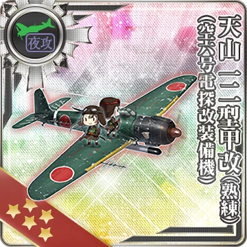 目玉はパンケーキなんでしょうけど、個人的には空母では瑞鳳が好きで瑞鳳にボーナスがあって、夜間機を持ってないということもあり、夜戦天山が一番うれしかったです。