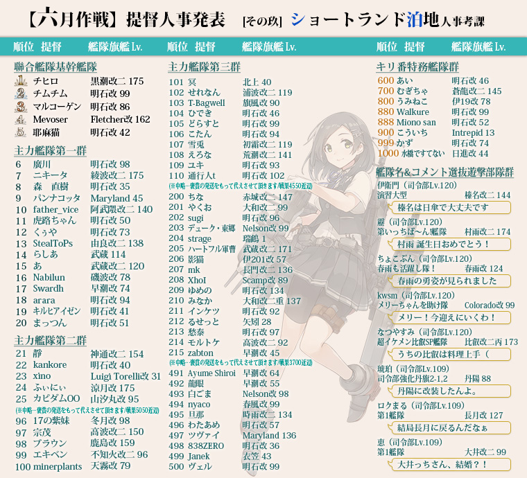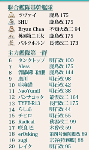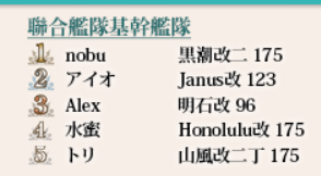 当時は稼働時間で除外されるとか言われていたので、初めての聯合ということもあり、発表までは除外におびえていました。