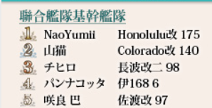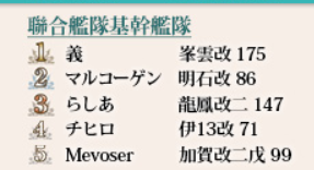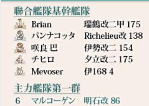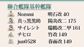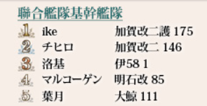 安定したとても良い順位です。聯合限定報酬が制式51cm連装砲だったので悔しかったです。