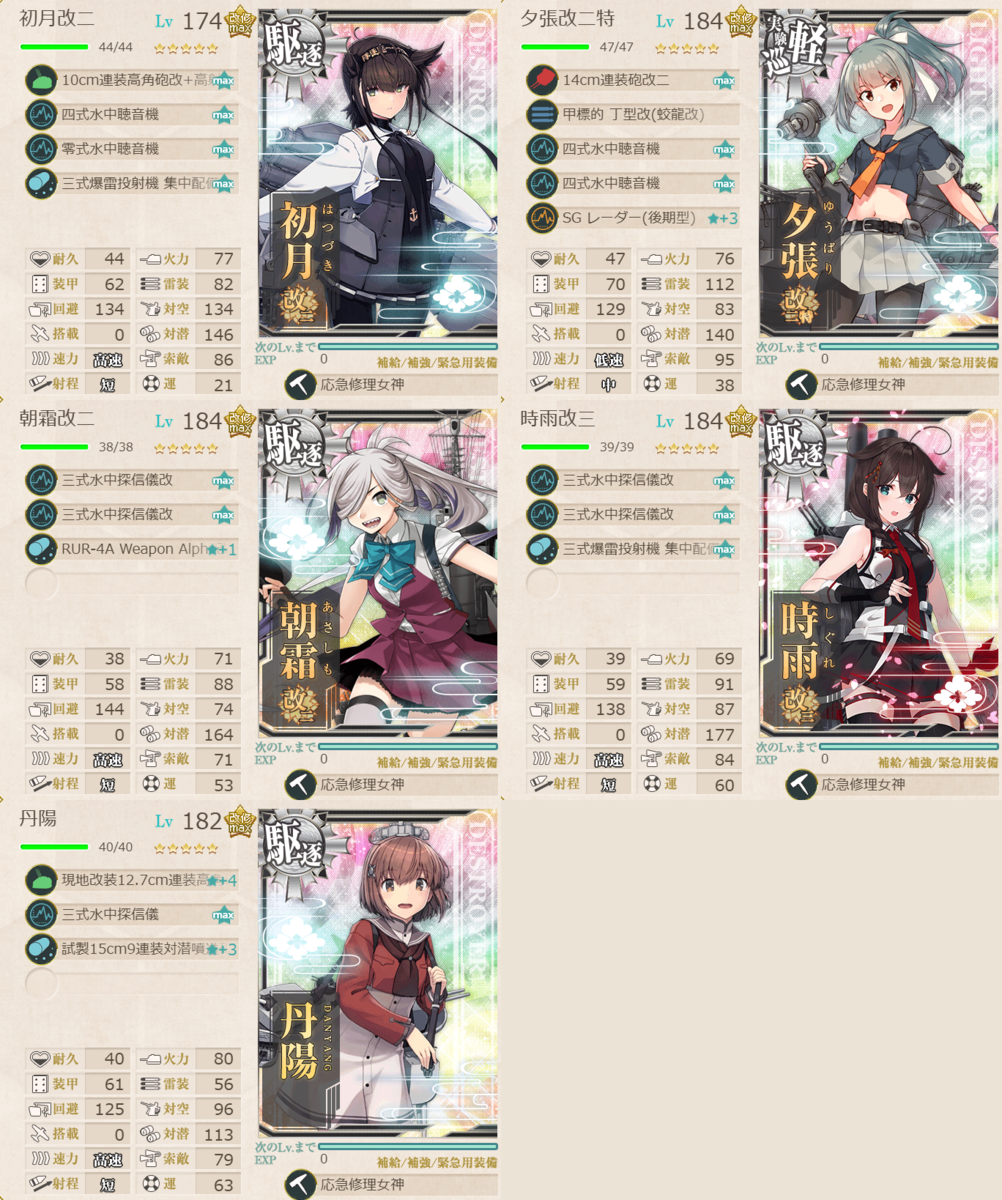 対潜火力は朝霜≒時雨>初月>夕張≒丹陽です。