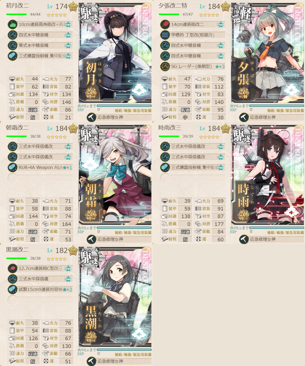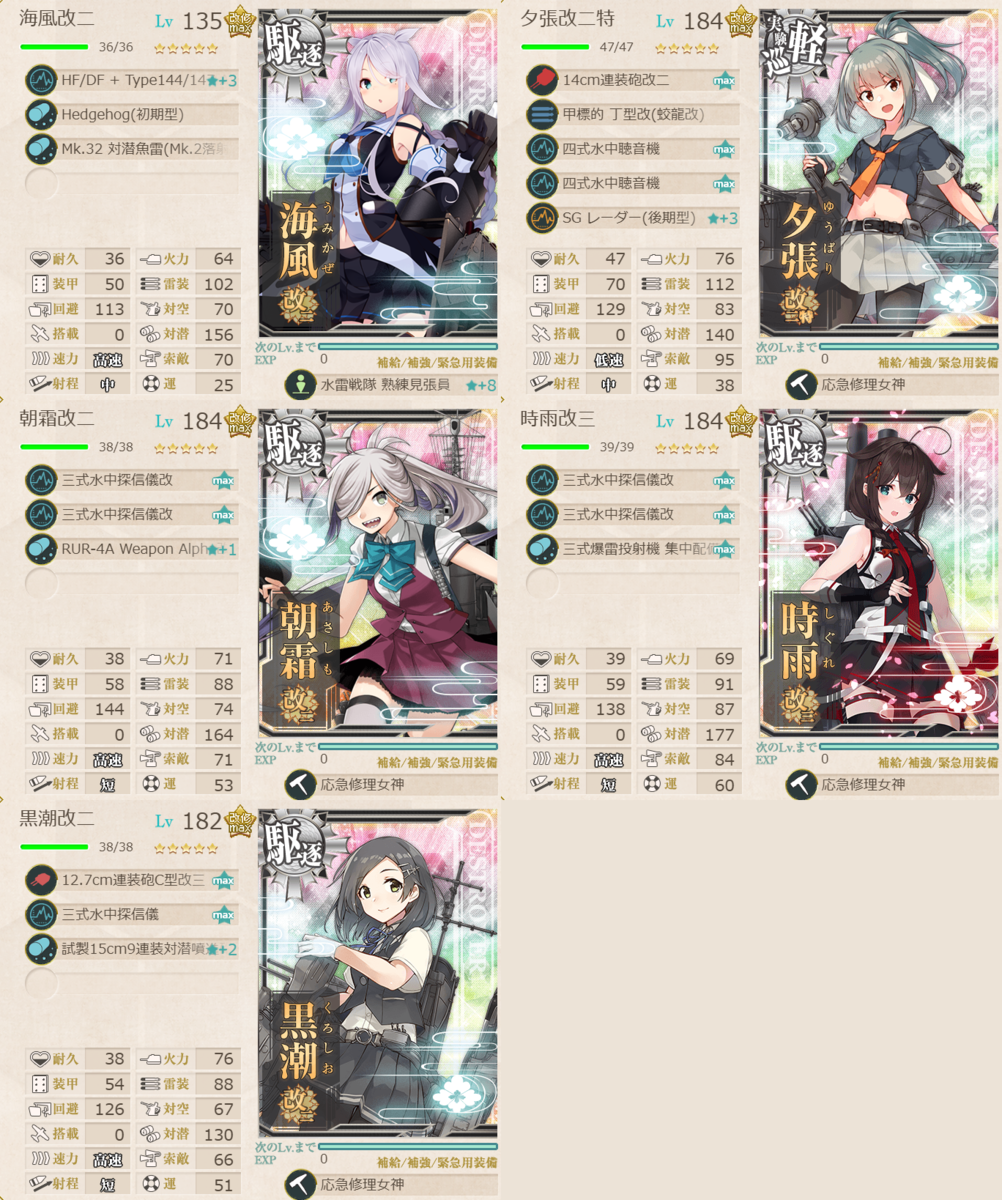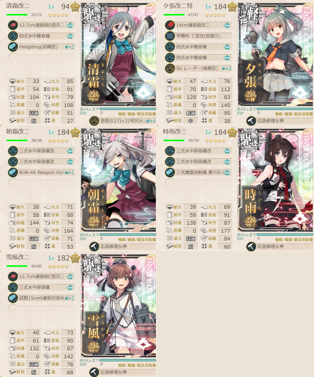 陽炎型のローテ枠適正が高くなったことを体現している編成です。